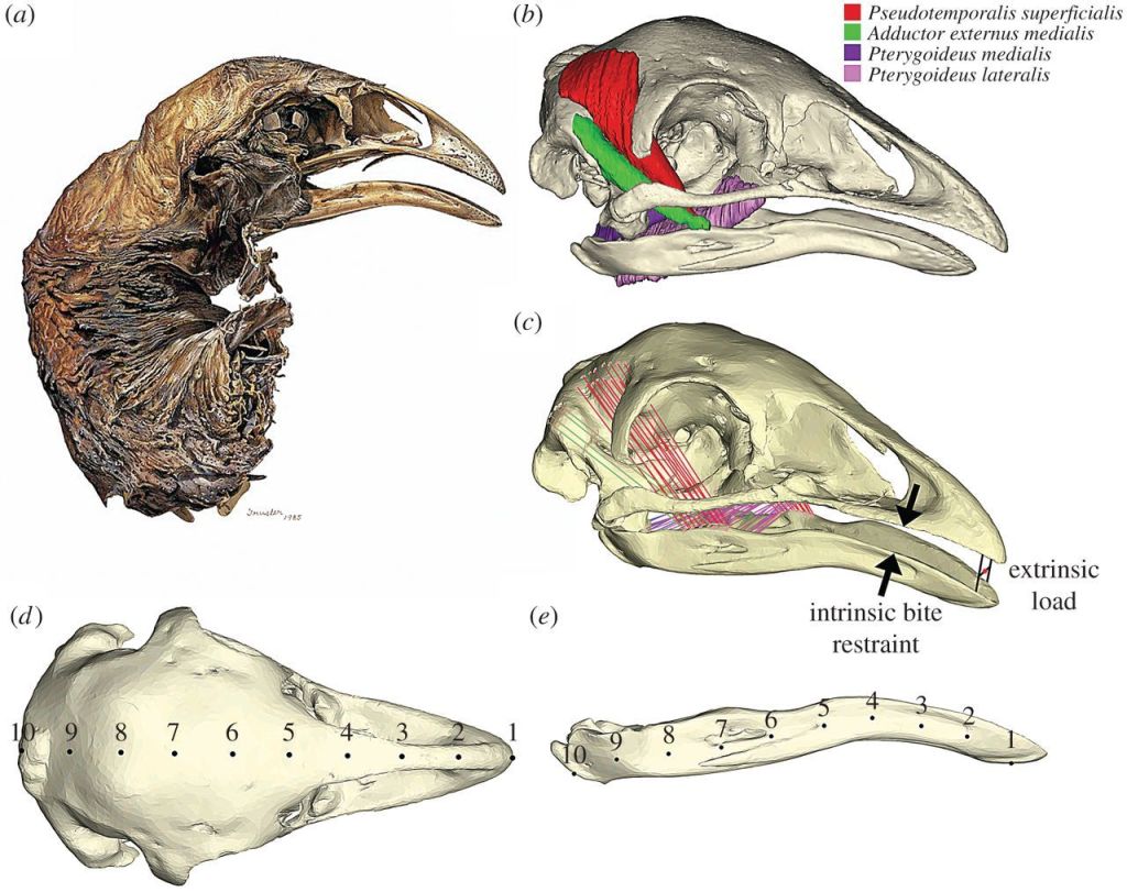 In this study, we used cutting-edge 3D finite-element analysis to examine the skulls of five moa genera and two extant ratites (flightless birds like ostriches and emus) to better understand the biomechanical performance of their skulls and predict their feeding behaviours. This innovative approach provides a clearer picture of how moa species may have used their beaks and skulls to process food, and how their feeding strategies differed from one another and from their living relatives.